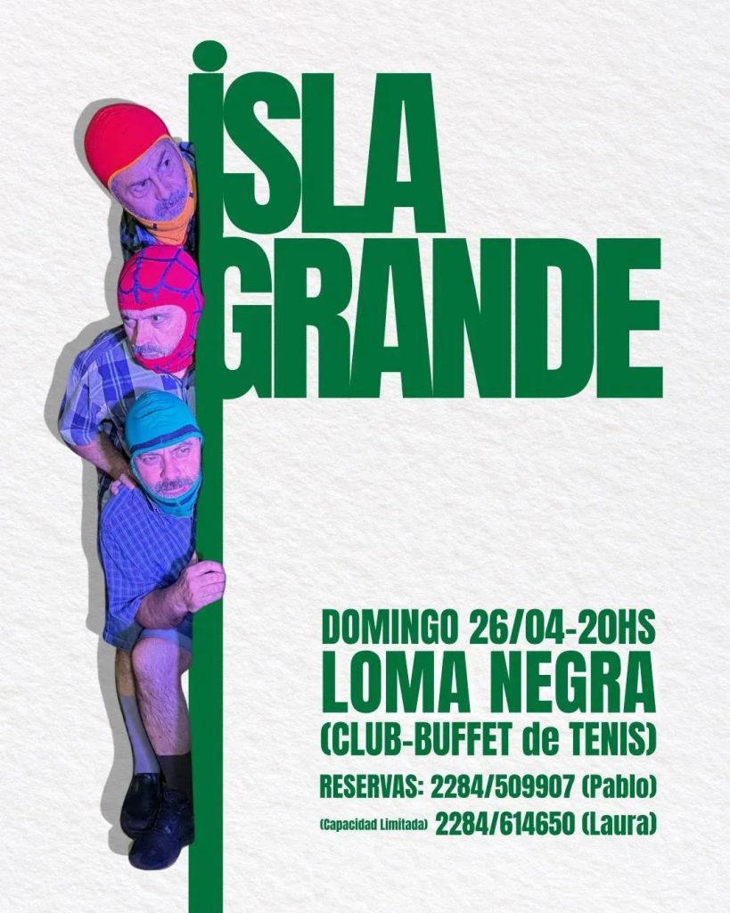 Isla Grande, bajo la dirección de Laura Tropea, con la actuación de Cristian Bernardo, Emilio Tocino y Fabián Pereyra. La dramaturgia corresponde a una creación colectiva.