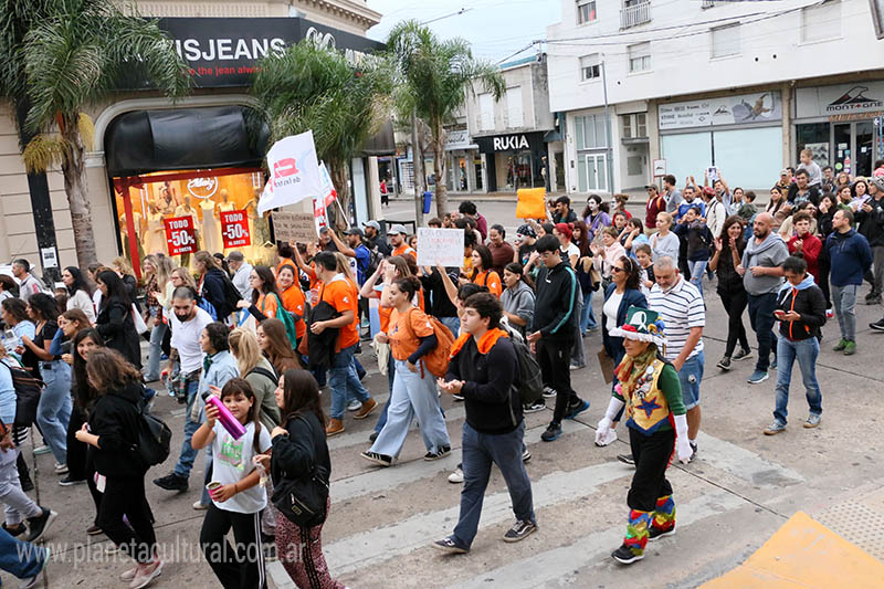 Ya casi llegando al cierre Luz Villarruel interpretó un par de canciones, de esas que te sacuden el cuerpo bien fuerte y le dio el paso a la Murga Arrebatando Lágrimas que luego de su espectáculo, encabezó los primeros metros de la marcha y armó un pasillo en la avenida Colón por donde transitó la masiva columna con los integrantes de la Comisión por la Memoria al frente. La manifestación que recorrió y llenó las calles de lucha por la Memoria, a Verdad y la Justicia, culminó con un abrazo colectivo en la Plaza Central.